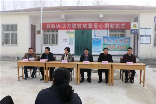 11月13日,在扶溝縣桐丘街道辦事處小胡行政村村委院內(nèi),縣政協(xié)副主席郝寶杰將市、縣政協(xié)委員們捐贈(zèng)的2萬元錢交到小胡、東五村黨支部書記手中,也將政協(xié)委員對(duì)脫貧攻堅(jiān)事業(yè)的愛心傳導(dǎo)到貧困戶的心中。