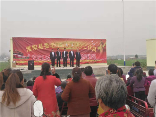 為扎實推進精準扶貧工作,豐富農(nóng)村文化生活,11月27日至11月30日,淮陽縣委老干部局發(fā)揮老干部優(yōu)勢,組織縣老干部藝術團赴四個幫扶村進行“文化惠農(nóng),助力扶貧”慰問演出,為廣大群眾送上一份豐盛的文化大餐。