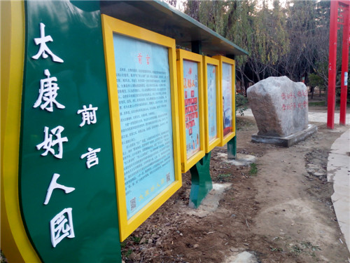 為把好人精神鐫刻在太康發(fā)展和進(jìn)步的進(jìn)程中,把太康建設(shè)成為好人之城、文明之城、和諧之城、美麗之城、幸福之城,從2018年9月起,太康“好人園”經(jīng)過(guò)緊鑼密鼓地籌建,如今開園迎賓。好人園緊扣“好人”主題,以道德風(fēng)尚建設(shè)為主線,在休閑公園的基礎(chǔ)上,秉承“因地制宜、因勢(shì)利導(dǎo)”的原則,堅(jiān)持寓教于園、寓教于景、寓教于樂(lè),以小處著手、局部微調(diào)的手法,通過(guò)“好人步道”“好人亭”“好人樹”“好人大舞臺(tái)”“好人精神長(zhǎng)廊”五大版塊,將道德風(fēng)尚高地建設(shè)與公園的整體風(fēng)格和功能定位完美結(jié)合。好人園兼顧了公園本身特色與文化傳播需要,利用林蔭小道,以石、亭、牌等基礎(chǔ)設(shè)施為載體,圖文并茂地展示太康近年來(lái)獲得國(guó)家和省級(jí)表彰的道德典型、身邊榜樣的先進(jìn)事跡,一步一景,隨景賦形。市民在游園過(guò)程中,潛移默化地接受“真、善、美”的教育和熏陶,激發(fā)人們見(jiàn)賢思齊,榜樣的引領(lǐng)作用不斷放大。