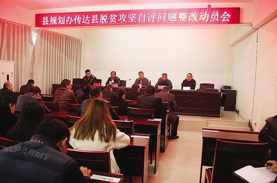 縣規(guī)劃辦傳達(dá)縣脫貧攻堅(jiān)自評問題整改動員會。 (記者 付永奇 通訊員 莊正富 攝)