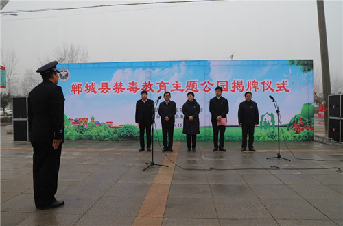 12月21日,鄲城縣舉行禁毒主題公園揭牌儀式,縣委書記羅文閣,縣委副書記、政法委書記、縣禁毒委主任崔衛(wèi)國(guó),縣人大常委會(huì)主任李建軍,縣政協(xié)主席姜永來等出席儀式并為禁毒主題公園揭牌。