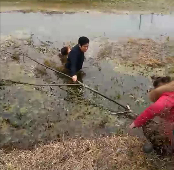 當(dāng)日上午12時許,在走村入戶返回住處途中,突然聽到不遠(yuǎn)處的黑河邊有女子大聲在喊:“快點來河里救人啊!有人跳進(jìn)河里啦!”正好路過此處的倪永勝和王懷銀聽到喊叫聲后,毫不猶豫地直奔出事地點。50多歲的王懷銀來不及脫下衣服和掏出兜里的手機(jī),一下子跳進(jìn)了冰冷的河水中,倪永勝迅速組織村里趕來的群眾進(jìn)行協(xié)助施救。此時,只見王懷銀全身衣服都濕透,在冰冷的河水中,王懷銀一手拄著一根樹枝防止下滑,一手使勁拉著跳河女子的手,在倪永勝和村民們的幫助下,將輕生女子成功救出。后經(jīng)醫(yī)生檢查,由于施救及時,該女子并無大礙。