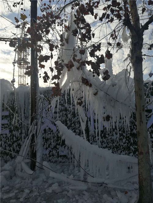 周口這兩天有多冷?周口一處工地圍擋噴淋用“噴水成冰”來告訴你天多冷。