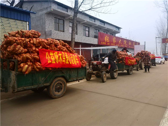 1月14日12時(shí)30分,滿載10萬斤愛心蘿卜的農(nóng)用車從張老家行政村整裝待發(fā)。這些愛心蘿卜將被運(yùn)到周口經(jīng)濟(jì)開發(fā)區(qū)廣場(chǎng)(南廣場(chǎng))、周口精神病院、長(zhǎng)青街中屹縫紉機(jī)商場(chǎng)等地向環(huán)衛(wèi)工人及弱勢(shì)群體發(fā)放。記者 黃佳 攝