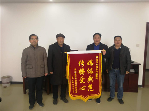 “傳播愛心,媒體典范”“為民解憂愁,心系千萬家”。1月25日上午,淮陽縣劉振屯鄉(xiāng)張老家行政村村支書張紀全專程趕到周口,給周口報業(yè)傳媒集團、周口市啄木鳥志愿者服務工作委員會送來兩面錦旗,表達他們的感激之情(如圖)。