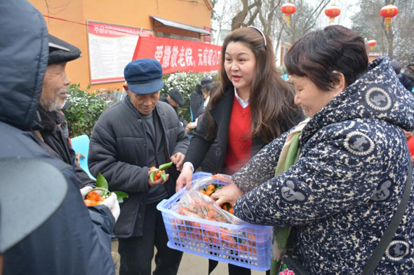 據(jù)了解,此次開展“愛灑敬老院、元宵暖心田”公益活動(dòng)的發(fā)起人,是剛剛獲得商水縣“道德模范”的愛心人士劉玉英。劉玉英是一名中共黨員,她早年外出務(wù)工,近幾年返鄉(xiāng)后任職某保險(xiǎn)公司。經(jīng)常關(guān)愛留守兒童和老人、對親戚鄰居慷慨相助,她還加入了“周口義工”團(tuán)隊(duì),踴躍參加當(dāng)?shù)亍笆∵\(yùn)會(huì)”“殘運(yùn)會(huì)”義務(wù)服務(wù)活動(dòng)?!耙粋€(gè)人的愛心是有限的,這次自愿報(bào)名參加人員都是愛心企業(yè)家,盡管他們工作都很忙,一聽說要去敬老院給老人送元宵都親自來了?!眲⒂裼⒔榻B說,“我們帶來了精心挑選的6件黑芝麻水果元宵、4件蘋果、4件砂糖橘、2件柚子、4件香蕉、2件雪梨,還有市區(qū)‘亨達(dá)果品’水果店老板獻(xiàn)愛心捐贈(zèng)的一箱西瓜,盡管這些東西價(jià)值只有1000多元,但畢竟是大家的一片心意!”