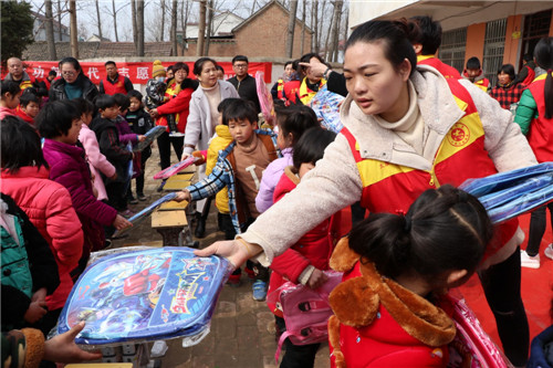 精彩的武術,漂亮的書包、校服……3月3日,太康縣王集鄉(xiāng)新店鋪小學106名學生每人收到了一份“大禮包”。當日,太康縣委宣傳部和縣文明辦在新店鋪村舉辦太康縣“好人節(jié)”暨學雷鋒“小手拉大手”志愿服務活動,30多名志愿者為學生們發(fā)放了書包、文具和校服等,并深入貧困戶家中幫助打掃庭院衛(wèi)生,受到村民的一致好評。