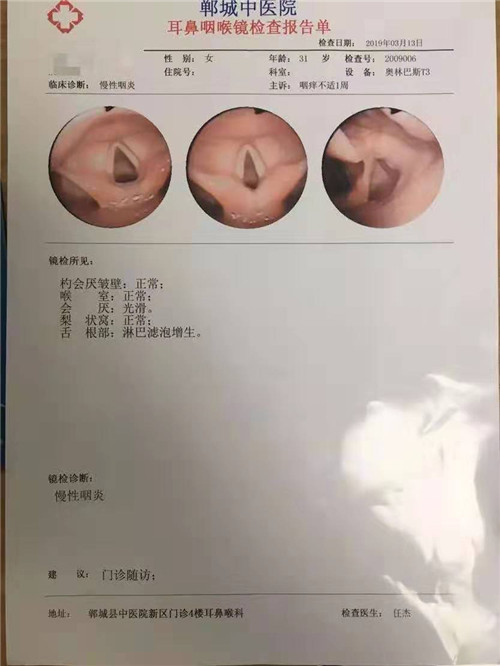 鄲城縣中醫(yī)院為進(jìn)一步提高耳鼻喉臨床診療水平,更好地為廣大耳鼻喉患者服務(wù)。近日,新引進(jìn)的纖維喉鏡系統(tǒng)(奧林巴斯T3)及工作站等設(shè)備正式調(diào)試完成,并投入使用。3月13日,完成第一例病人診療報告打印。