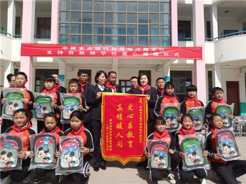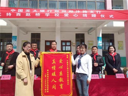 光大銀行鄭汴路支行向商水趙橋?qū)W校獻(xiàn)愛(ài)心