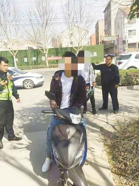 3月16日15時(shí)許,鄲城縣交警大隊(duì)治超中隊(duì)民警巡邏至公園東路時(shí),發(fā)現(xiàn)兩名小伙子駕駛“炸街摩托”開得飛快,險(xiǎn)象環(huán)生。執(zhí)勤隊(duì)長(zhǎng)何濤立即指令前方巡邏民警布置錐筒和警示牌進(jìn)行攔截。經(jīng)過(guò)一番努力,執(zhí)勤民警終于將兩輛“炸街摩托”攔停。