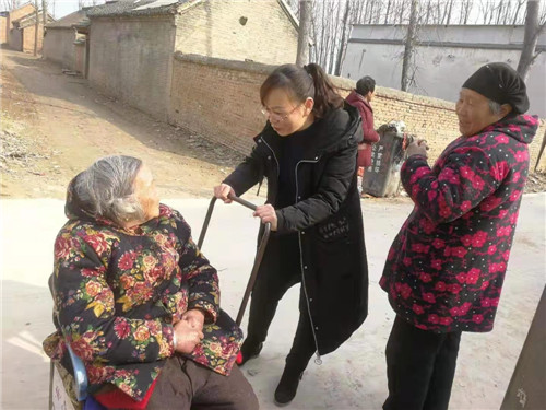 鏗鏘扶貧路,拳拳民生情。林娜加班加點,扎實的作風(fēng)不僅有效推動了幫扶工作的順利推進,而且也換來了當?shù)卮迕竦摹包c贊”。為推進老人戶合吃合住問題,林娜三番五次去做工作,段屯行政村于樓村86歲的老人王全英,年邁不能自理,遭兒子嫌棄,3個兒子都不愿贍養(yǎng)老人。一次,陰雨天,老人不慎跌倒,摔傷胳膊,兒女們都不管不顧,林娜在走訪的過程中了解情況后,立即幫老人買來膏藥貼上,同時開始做兒女的思想工作,“家有一老似有一寶,孝親愛老是中華民族的傳統(tǒng)美德”,經(jīng)過林娜再三做思想工作,三個兒子茅塞頓開,愿意贍養(yǎng)老人,最終老人在三個兒子家輪流吃住。在林娜及隊員的共同努力下,段屯行政村不僅老人戶全部合戶,而且在全村掀起了爭做賢孫孝媳的局面。一名老黨員袁士成,每次見了工作隊都豎起大拇指說:“兒女好,兒女好,兒女再好不如共產(chǎn)黨對俺好”。