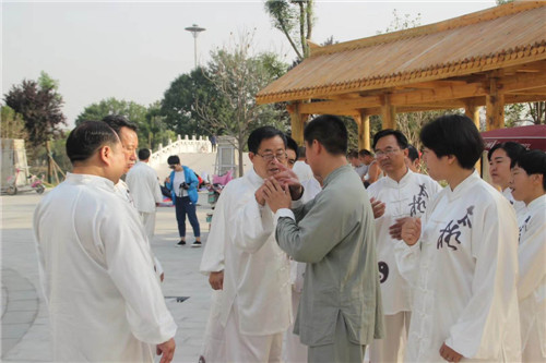 在李廣的示范帶動下,縣財政局先后又有10多人加入其中,形成了一個龐大的太極拳義務傳授團隊。幾年來,李廣團隊每天早晚堅持頭頂著晨曦、沐浴著夕陽,義務傳授太極拳,弘揚傳播老子文化,乘借著鹿邑既定的“產(chǎn)業(yè)興城、文化立縣”發(fā)展戰(zhàn)略東風,持續(xù)為唱響“老子故里、道家之源、道教祖庭、李姓之根”四大文化品牌添磚加瓦、吶喊助威。