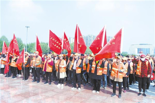 為確保成功創(chuàng)建國家衛(wèi)生城,市開發(fā)區(qū)在全區(qū)范圍內(nèi)開展“我為‘創(chuàng)衛(wèi)’添光彩”活動(dòng),營造濃厚的“創(chuàng)衛(wèi)”氛圍。該區(qū)公用事業(yè)局組織環(huán)衛(wèi)職工開展“創(chuàng)衛(wèi)”百日沖刺誓師大會(huì),680名環(huán)衛(wèi)工人莊嚴(yán)宣誓,表示要為建設(shè)美麗周口交出一份精彩答卷。
