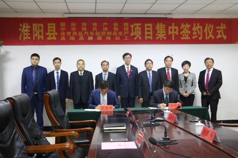 本次會議共簽約四個項目,總投資約17.5億元。分別是:河南龍都文化娛樂有限公司投資5.1億元的國際產業(yè)園項目。翰高兄弟(北京)投資集團投資10億元的中華姓氏博物館項目。東莞啟昊服飾有限公司投資1.2億元的高檔服飾加工項目;溫州奕銘新材料股份有限公司投資1.2億元的體育及汽車用品項目。