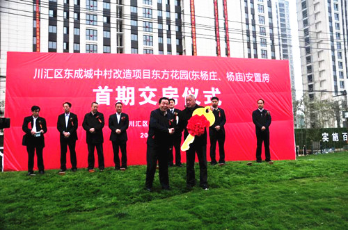 據(jù)介紹,東成城中村改造項(xiàng)目是2014年豫港經(jīng)貿(mào)洽談會(huì)重點(diǎn)簽約的5個(gè)項(xiàng)目之一,是省、市重點(diǎn)棚戶區(qū)改造項(xiàng)目,涉及川匯區(qū)、經(jīng)濟(jì)技術(shù)開發(fā)區(qū)2個(gè)辦事處3個(gè)行政村,總占地4300多畝,其中川匯區(qū)七一路辦事處東楊莊行政村1700多畝。當(dāng)天交付的東方花園安置房是東楊莊、楊廟安置區(qū)項(xiàng)目,該項(xiàng)目占地102.7畝,總建筑面積23.6萬平方米,總投資6.52億元,建設(shè)安置房2010套,同時(shí)配建幼兒園1所、地下地上車位1600個(gè)、社區(qū)及商業(yè)服務(wù)用房1.8萬平方米。該項(xiàng)目于2016年10月26日正式開工建設(shè),經(jīng)過30個(gè)月的緊張施工,其中1棟樓208套房達(dá)到交付條件正式向回遷群眾交付。預(yù)計(jì)到7月1日,將再交付6棟樓1112套房,明年“五一”,整個(gè)安置區(qū)將全部交工。