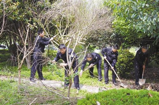 我市召開創(chuàng)建國(guó)家衛(wèi)生城市百日沖刺動(dòng)員大會(huì)以來,市公安局犯罪偵查支隊(duì)指揮室黨支部號(hào)召黨員民警從身邊做起、從小事做起、從點(diǎn)滴做起,以實(shí)際行動(dòng)積極參與“創(chuàng)衛(wèi)”工作。圖為4月28日上午,民警在營(yíng)區(qū)修剪花木、清掃殘葉。記者 竇娜 攝