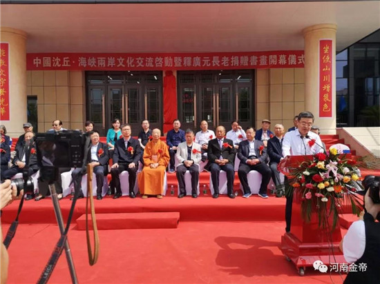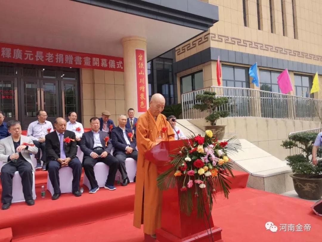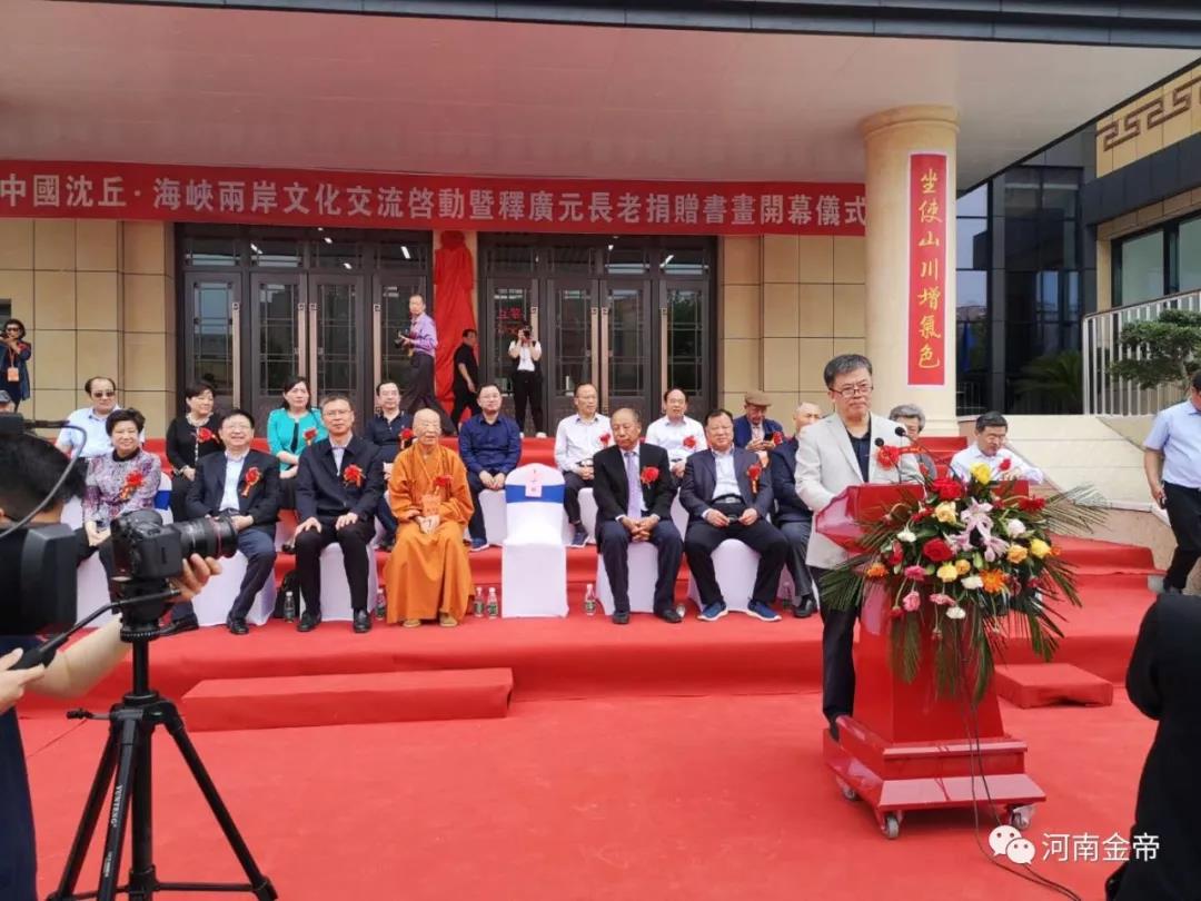 釋廣元長(zhǎng)老在致辭中說(shuō),多年來(lái)雖身在臺(tái)灣,卻時(shí)刻心系故土,為推動(dòng)兩岸同胞心靈契合、深化兩岸文化交流中貢獻(xiàn)自己的綿薄之力。希望此次無(wú)條件捐贈(zèng)的藝術(shù)館古今名家書畫數(shù)百幅,能為家鄉(xiāng)文化建設(shè)貢獻(xiàn)微薄之力。同時(shí)提議將釋廣元藝術(shù)館更名為“沈丘藝術(shù)館”,為沈丘文化的發(fā)展繁榮注入新的生機(jī)和活力。