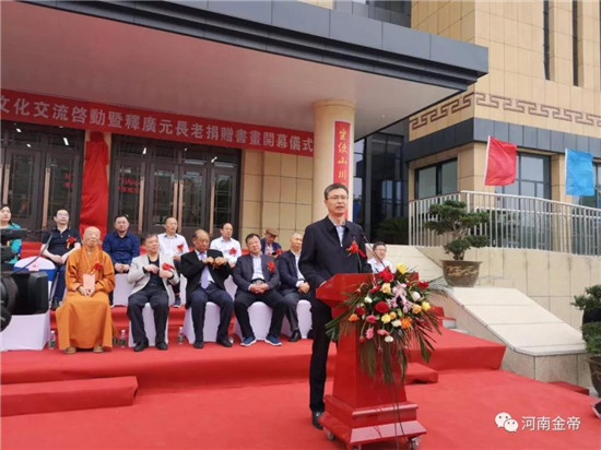 省文聯(lián)黨組書記王守國(guó)在開幕式上說(shuō),釋廣元長(zhǎng)老不顧90多歲高齡,帶領(lǐng)50多名臺(tái)灣同胞,過(guò)??缃瑯s歸故鄉(xiāng),出席捐贈(zèng)活動(dòng),這不僅匯融了釋廣元長(zhǎng)老的“鄉(xiāng)愁”情節(jié),更是釋廣元長(zhǎng)老不忘初心,反哺家鄉(xiāng)情懷的具體體現(xiàn)。希望越來(lái)越多的臺(tái)灣同胞蒞臨河南,感悟中原,融入中原,攜手并進(jìn)砥礪前行共筑中國(guó)夢(mèng)!