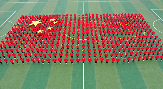 5月11日,扶溝縣中小學(xué)校足球聯(lián)賽暨中學(xué)生田徑運(yùn)動會在縣秋實(shí)中學(xué)開幕。開幕式上,近4000名師生氣勢恢宏的大型團(tuán)體操表演,展示了激情飛揚(yáng)、活力四射的新時代精神風(fēng)貌。圖為縣回族小學(xué)表演的《同在陽光下》團(tuán)體操。