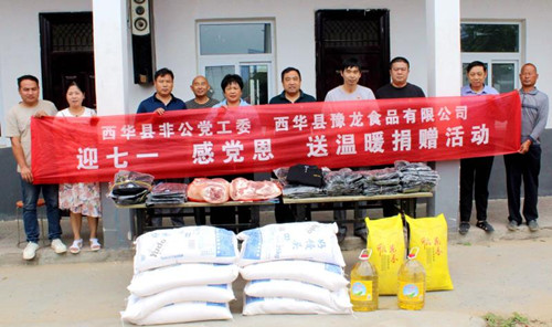 5月28日,西華縣非公黨工委聯(lián)合愛(ài)心企業(yè)開(kāi)展“迎七一、感黨恩、送溫暖”捐贈(zèng)活動(dòng),西華縣非公黨工委書(shū)記李永民帶領(lǐng)非公黨工委工作人員、西華縣豫龍食品有限公司經(jīng)理李會(huì)霞,以及部分非公企業(yè)黨支部書(shū)記,為黃橋鄉(xiāng)敬老院送去了價(jià)值5000余元的衣服、豬肉、面粉、米、食用油等物品。