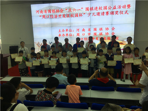 活動中,來自我市各地的百余名圍棋小選手們齊聚一堂,切磋棋藝,以特殊的方式慶祝六一兒童節(jié)。省圍棋協(xié)會向周口經濟開發(fā)區(qū)實驗學校捐贈了小學生圍棋教材、圍棋題集等圍棋書籍和器具。