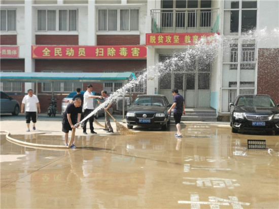 “創(chuàng)建國(guó)家衛(wèi)生縣城具有十分重要的意義。教育系統(tǒng)有責(zé)任、有義務(wù)在創(chuàng)衛(wèi)中作出表率,機(jī)關(guān)引領(lǐng)基層,學(xué)校帶動(dòng)社會(huì)?!编惓强h教體局局長(zhǎng)劉現(xiàn)營(yíng)在動(dòng)員會(huì)上發(fā)出號(hào)召,局班子成員、股室站負(fù)責(zé)人積極響應(yīng),放棄周末休息時(shí)間,打掃清理機(jī)關(guān)衛(wèi)生。