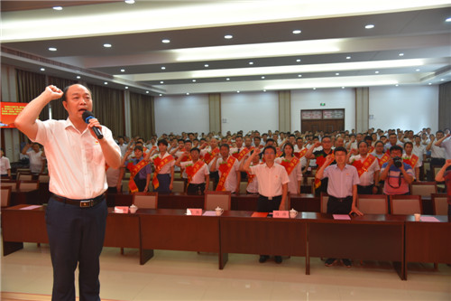 馮濤在致辭中說,近年來,在縣委的團(tuán)結(jié)帶領(lǐng)下,全縣各級(jí)黨組織和廣大黨員按照全面加強(qiáng)黨建、努力構(gòu)建“五個(gè)扶溝”新要求,充分發(fā)揮戰(zhàn)斗堡壘和先鋒模范作用,抓黨建、促發(fā)展,在困境中苦干,在艱難中奮進(jìn),在貧窮中求變,順利實(shí)現(xiàn)了脫貧摘帽,逐步實(shí)現(xiàn)了新型城鎮(zhèn)化、新型工業(yè)化和新型農(nóng)業(yè)現(xiàn)代化協(xié)調(diào)推進(jìn)的良好局面。全縣各級(jí)黨組織和廣大黨員要不忘初心、牢記使命,以紀(jì)念建黨98周年為契機(jī),凝心聚力謀發(fā)展,求真務(wù)實(shí)圖趕超,為打贏三大攻堅(jiān)戰(zhàn)、實(shí)施鄉(xiāng)村振興戰(zhàn)略提供堅(jiān)強(qiáng)的組織保障,并團(tuán)結(jié)帶領(lǐng)全縣人民以奮發(fā)有為的精神狀態(tài)、苦干實(shí)干的工作作風(fēng),矢志不渝,砥礪前行,為建設(shè)開放、富裕、文明、綠色、和諧的美麗扶溝而努力奮斗。
