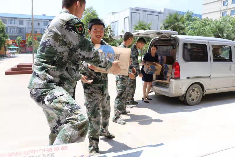 7月29日,太康縣清華園書店負(fù)責(zé)人李丹駕駛面包車,先后來到縣人民武裝部和消防大隊(duì),為部隊(duì)官兵和消防指戰(zhàn)員送來礦泉水等。讓他們在高溫天氣里感受到清華園書店送來的絲絲清涼?!八麄兤匠S?xùn)練、滅火很辛苦,作為一個愛心企業(yè),關(guān)心部隊(duì)官兵是我應(yīng)盡的義務(wù)?!崩畹ばχf。