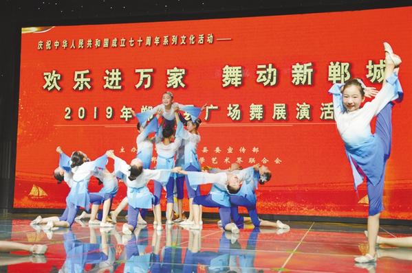 近日,以“歡樂進(jìn)萬家 舞動新鄲城”為主題的2019年鄲城縣廣場舞展演活動在單程縣融媒體中心演播廳舉行。來自全縣各個鄉(xiāng)鎮(zhèn)的20支代表隊依次登場,參賽隊員身著統(tǒng)一服裝,隨著優(yōu)美的旋律翩翩起舞。記者 徐松 通訊員 朱應(yīng)召 攝