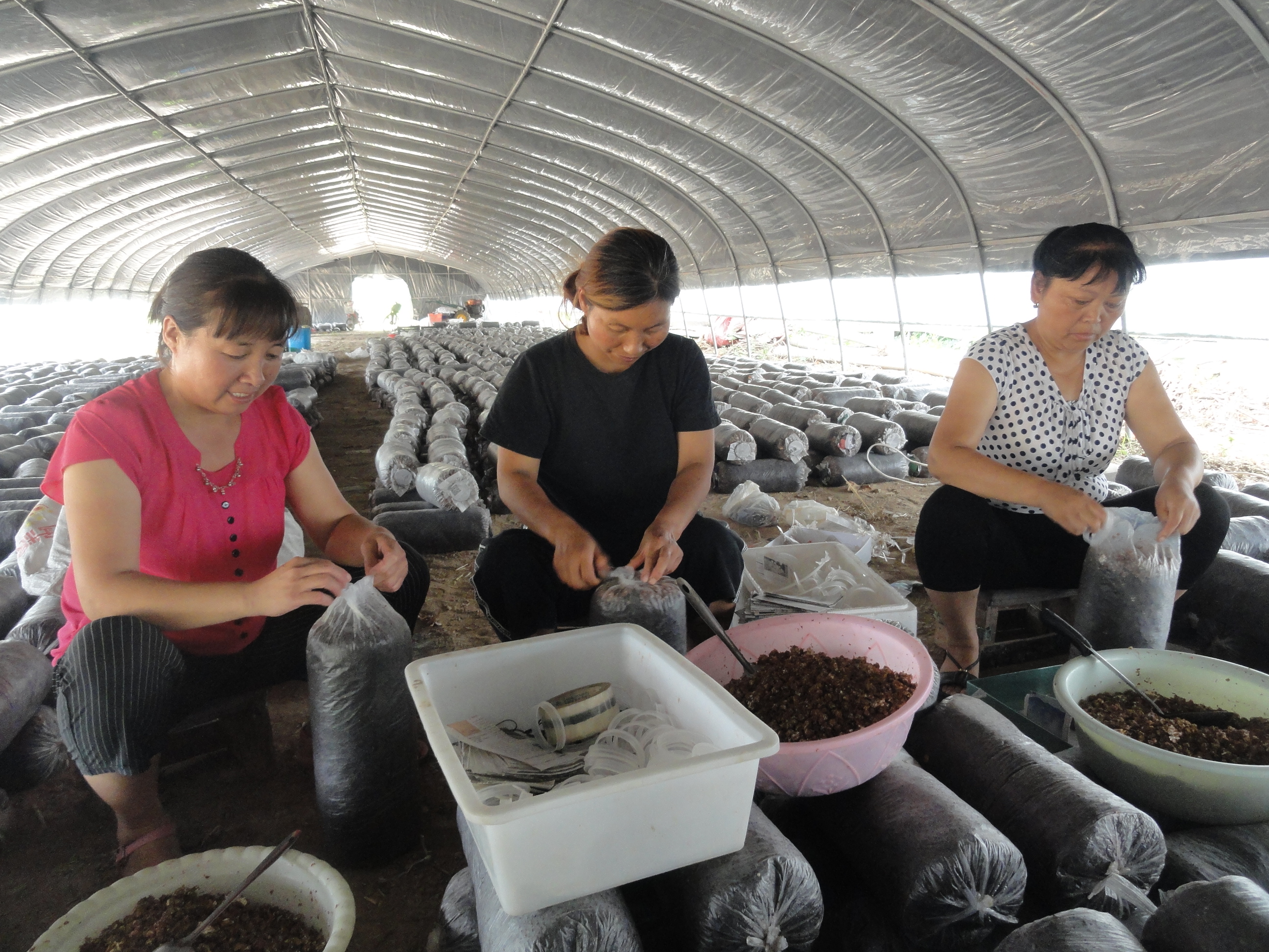 黃寨鎮(zhèn)的楊秀麗在鎮(zhèn)黨委、鎮(zhèn)政府的支持下,先后投資120多萬元,在楊營村創(chuàng)建了榮達(dá)食用菌合作社,實(shí)行統(tǒng)一育種、統(tǒng)一管理、統(tǒng)一技術(shù),直接帶動20多戶群眾實(shí)現(xiàn)增收。圖為昨日,楊秀麗和合作社人員一起裝封菌種。