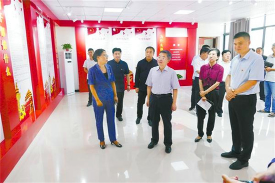 皇甫立新首先來到槐店回族鎮(zhèn)海樓社區(qū)。海樓社區(qū)位于縣城中心,是全縣政治經(jīng)濟(jì)文化中心。走進(jìn)社區(qū),路兩旁紅旗飄飄,新時代、新思想、新目標(biāo)、新征程等具有時代特色的宣傳畫繪制在兩邊的墻壁上。社區(qū)廣場上“百村綜合治理辦公室”的牌子特別醒目,社區(qū)辦公室有關(guān)百村綜合治理的規(guī)章制度一應(yīng)俱全。皇甫立新對海樓社區(qū)的工作給予充分肯定,并就工作中存在的問題給予指正,要求社區(qū)黨支部突出建好、管好、用好村委黨員會議室,突出主題,唱響主旋律。