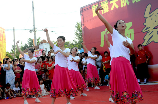 為了把節(jié)目辦的出彩,村民們非常認(rèn)真,不僅動(dòng)員老少婦女們參與排練,晚上吃過(guò)飯?jiān)诖暹呉槐楸榈木殻钡侥苁炀毶蠄?chǎng),另外,他們還請(qǐng)來(lái)劇團(tuán)的演員當(dāng)評(píng)委,每場(chǎng)精彩的演出,博得大伙叫好聲。評(píng)委也被邀上臺(tái) ,臨場(chǎng)助興,多才多藝的村民也見縫插針地表演一番才藝,一場(chǎng)村頭廣場(chǎng)舞大賽有聲有色,笑聲連連,展示了農(nóng)民在奔小康道路上的自信、幸福和執(zhí)著。