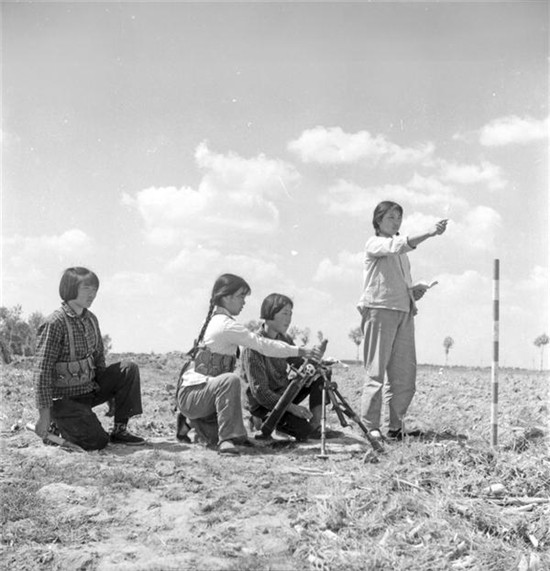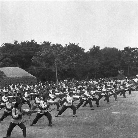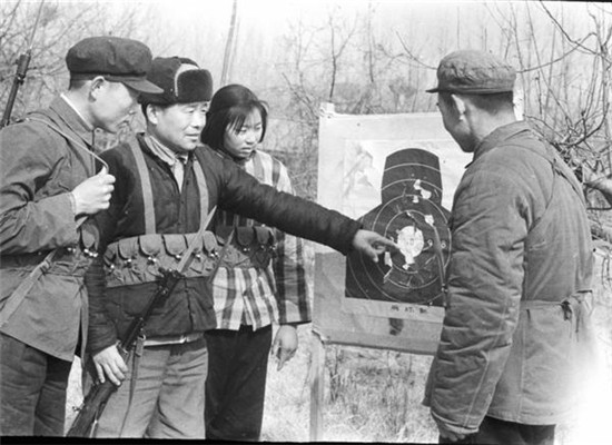 全民皆兵作為貫穿在毛澤東時代的一個最具中國特點的社會景觀,留下了許多值得回味的畫面。廣大農(nóng)民和工人亦兵亦民、亦工亦兵,拿起鋤頭是莊稼漢,走進車間是工人,拿起槍桿就是一個兵。民兵訓練在正規(guī)軍人的指導下利用農(nóng)閑時間,采取小型、就地、分散的方法進行,主要訓練課目有隊列、刺殺、步槍射擊、投手榴彈、簡易單兵戰(zhàn)術(shù)、站崗放哨等。