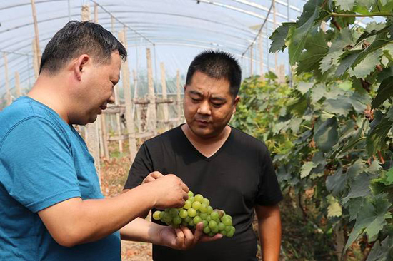 “2016年我們財政局出資13萬元,幫村民建了這個15畝的葡萄園,由30戶貧困戶做股東,孫東獻懂葡萄種植技術(shù)由孫東獻來管理,每年帶動近十戶貧困戶來葡萄園打工,每戶凈收入4000多元,加上出售葡萄的分紅,每戶凈收入提高到近5000元。并且這是個可持續(xù)發(fā)展的項目。”駐村書記侯俊昌介紹說。