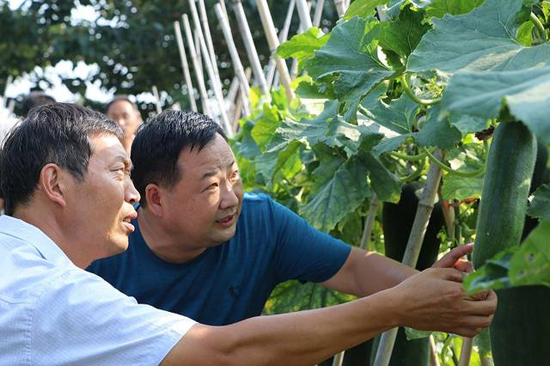 炎炎夏日,大棚下的侯俊昌汗水再次濕透,他撫摸著一串串紫紅色的葡萄說,這都是改變貧窮的“紫珍珠”啊,只要我們班子上下齊心協(xié)力,小小的葡萄也能幫我們“拔掉窮根?!辈粌H僅是葡萄產(chǎn)業(yè),村里的婦聯(lián)主任徐桂蘭也主動帶頭創(chuàng)業(yè),承包了80畝的田地,種起了優(yōu)質(zhì)冬瓜,畝產(chǎn)上萬斤,通過駐村幫扶,提供產(chǎn)銷信息,遠銷到省內(nèi)外多地。秋季種小麥、夏季種冬瓜的模式,畝產(chǎn)收益均在4000元以上。她平時鼓勵村里貧困戶到冬瓜地打工,每年帶動近20戶貧困戶,每戶增加收益近5000元?!焙羁〔嬖V我們,“產(chǎn)業(yè)扶貧,造血扶貧在位口村已經(jīng)深深扎根,同時也吸引了很多在外務(wù)工的有識青年返鄉(xiāng)創(chuàng)業(yè),有的做起了尾毛生意、有的做起了毛刷生意?,F(xiàn)在全村興起人人講創(chuàng)業(yè),戶戶拼經(jīng)濟的良好氛圍?!?/p>