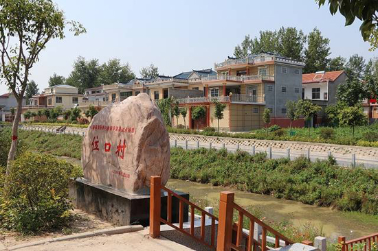 天藍水清,綠樹成蔭,九曲橋旁邊的岸上開滿了格?;?,不時有水鳥從水面掠過,這不是某個大城市的濕地公園。這是位口村的“水上公園,”如今已經(jīng)成了村里的標(biāo)志性建筑。夜幕降臨,村民們?nèi)齼蓛删墼诤舆吷⒉?、乘涼。”有人編了小曲:格?;▋合蜿栭_,歡迎您到位口來;扶貧攻堅結(jié)碩果,村民感恩黨關(guān)懷……