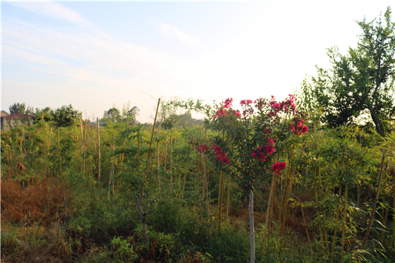 米杰是第一個(gè)嘗試吃螃蟹的田園綜合體追夢(mèng)人,這個(gè)在外打拼多年事業(yè)有成的豫東漢子,放棄了原本舒適的城市生活,于去年初回到老家大米行政村,通過(guò)流轉(zhuǎn)連片成方土地,栽植紫薇、紅梅、丁香、臘梅、石楠、海棠、櫻花、碧桃、無(wú)花果、蘋果、藍(lán)莓、石榴、冬棗等各類喬木果樹,并配套完成地下供排水管網(wǎng)和線纜埋設(shè)等現(xiàn)代化農(nóng)田設(shè)施,和鎮(zhèn)里已經(jīng)形成的萬(wàn)畝中藥材基地連成一片,形成規(guī)模效應(yīng)。朝著他心目中的“一田花、一片林、一灣水、一首詩(shī)、一幅畫”——惠濟(jì)灣田園旅游新高地闊步前行。