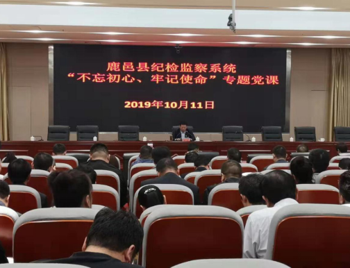 10月11日,鹿邑縣委常委、紀(jì)委書記、監(jiān)委主任韓林利用縣紀(jì)委監(jiān)委“不忘初心、牢記使命”主題教育集中學(xué)習(xí)時間以《砥礪初心本色 ,強化使命擔(dān)當(dāng),奮力推進新時代紀(jì)檢監(jiān)察工作高質(zhì)量發(fā)展》為題為全縣紀(jì)檢監(jiān)察系統(tǒng)全體干部上了一堂生動的專題黨課。