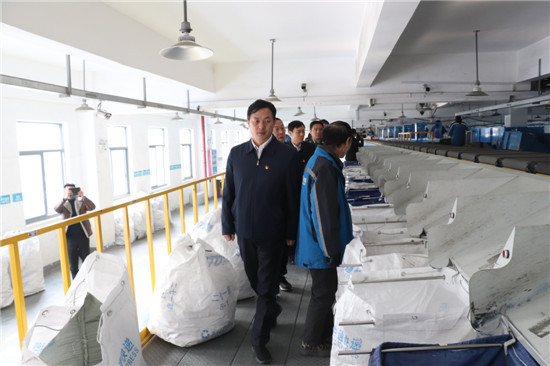 在中通快遞分撥中心,林鴻嘉一行實地查看企業(yè)的生產(chǎn)場地、安檢、傳輸、分揀設(shè)備和信息系統(tǒng)等基礎(chǔ)設(shè)施建設(shè)情況,聽取企業(yè)負(fù)責(zé)人關(guān)于企業(yè)總體規(guī)劃、日常運營、業(yè)務(wù)發(fā)展和位于我縣址坊鎮(zhèn)的中通快遞豫南分撥中心項目發(fā)展規(guī)劃等方面的介紹。