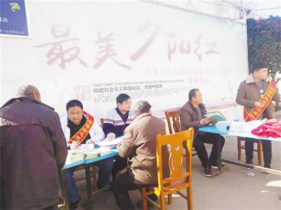 近日,項(xiàng)城市賈嶺鎮(zhèn)衛(wèi)生院學(xué)雷鋒志愿服務(wù)隊(duì)到該鎮(zhèn)敬老院開展義診活動(dòng),為老人免費(fèi)體檢。記者 楊光林 通訊員 黃國贊 攝