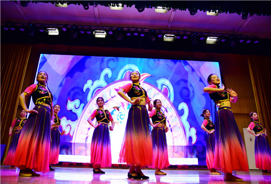整個聯(lián)誼會共有16個節(jié)目,分舞蹈、歌曲、詩朗誦,先進事跡報告等。河南科技職業(yè)大學(xué)的大學(xué)生們表演了舞蹈《本色》《最初的夢想》《綻放》,中共周口市委黨校2019年秋季科長班的同學(xué)進行了詩朗誦《可愛的祖國》等節(jié)目,更讓人感動的是,科長班的陳一華同學(xué)向大學(xué)生們講述了自己資助5個孤兒的愛心歷程,成為聯(lián)誼會最暖心的節(jié)目。來自景蘭東方舞的才女們,也為同學(xué)們獻藝,表演了異域風(fēng)情的舞蹈,讓同學(xué)們非常開心。最后,聯(lián)誼會在大合唱《我和我的祖國》歌聲中落下帷幕。