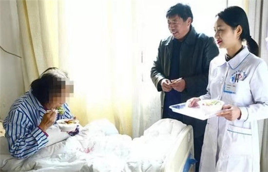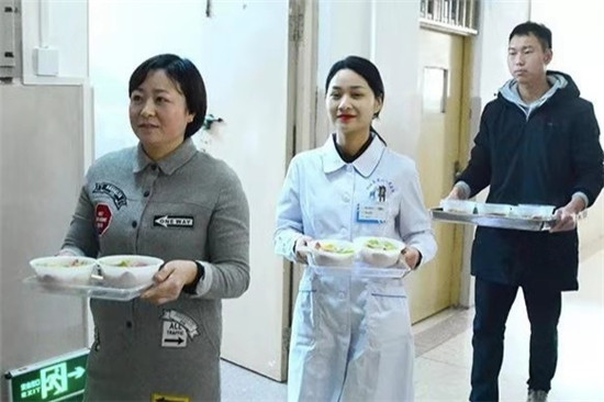 餃子煮好,盛入碗內(nèi),端入病房,親手送到患者手中,看到患者品嘗餃子時(shí)的開(kāi)心樣子,醫(yī)護(hù)人員從心里笑到了臉上。