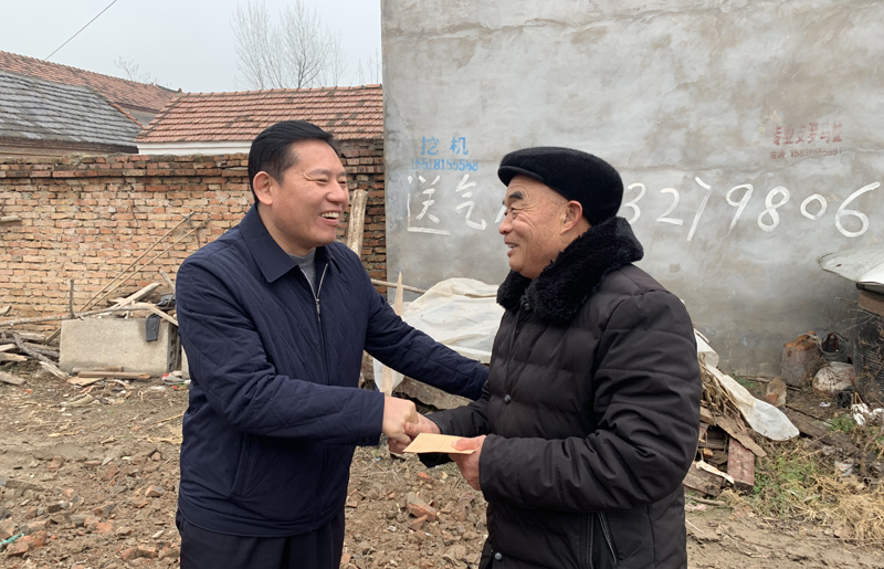 在牛莊和梁莊行政村,趙紅建在寧平鎮(zhèn)鎮(zhèn)長王樹勤的陪同下,看望慰問了困難群眾、困難老黨員,送去了慰問金,向他們致以新春的問候和美好的祝福。