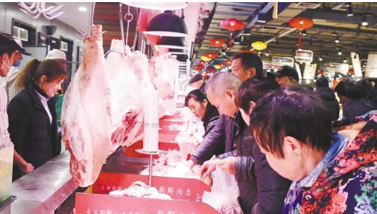 1月18日上午,在中心城區(qū)萬果園超市內(nèi)的2020年春節(jié)政府平價(jià)豬肉專柜前,擠滿了購買豬肉的市民。春節(jié)將至,為保障節(jié)日市場供應(yīng),我市從1月17日至23日的早上9時(shí)至下午4時(shí)在中心城區(qū)20家超市將投放300噸應(yīng)急保障協(xié)議豬肉,供市民購買。