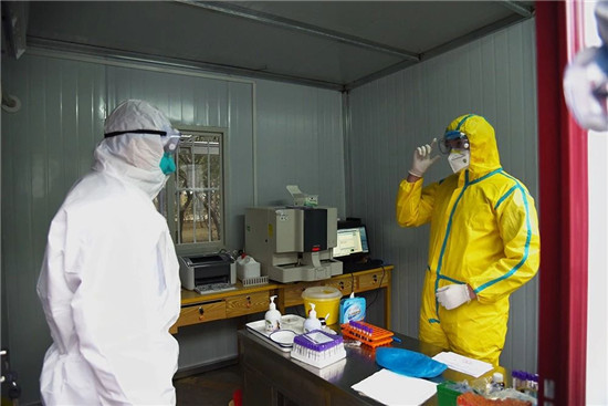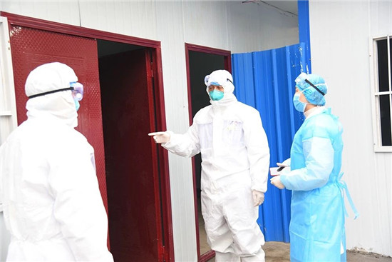 醫(yī)院在附近賓館租用25個(gè)單間,用于一線醫(yī)務(wù)人員臨時(shí)休息,醫(yī)務(wù)人員換班時(shí)由專車接送,吃飯由專人派送,確保任何一個(gè)環(huán)節(jié)都不會(huì)發(fā)生意外感染。 于健、高飛深入隔離區(qū)慰問(wèn)值班醫(yī)務(wù)人員,對(duì)他們舍小家、顧大家,為防疫工作大局、為更多群眾的生命與健康付出的辛苦努力,表示衷心的感謝。