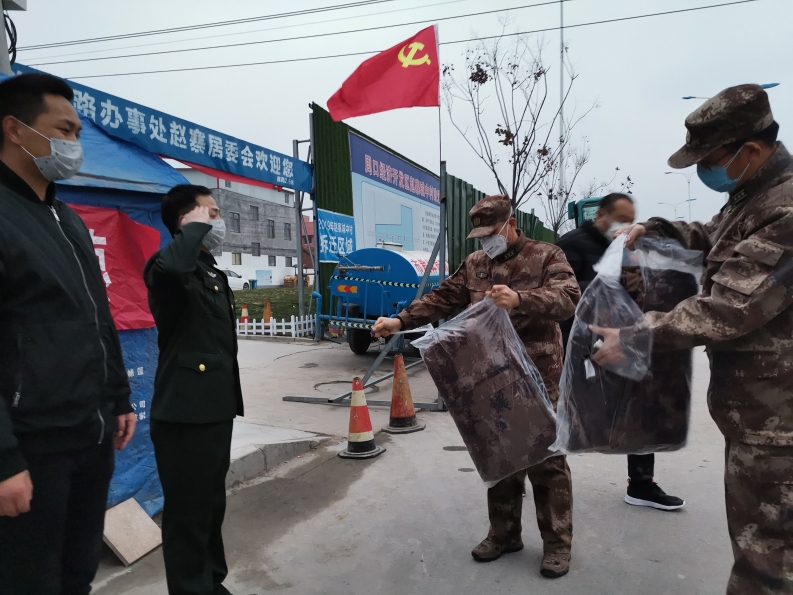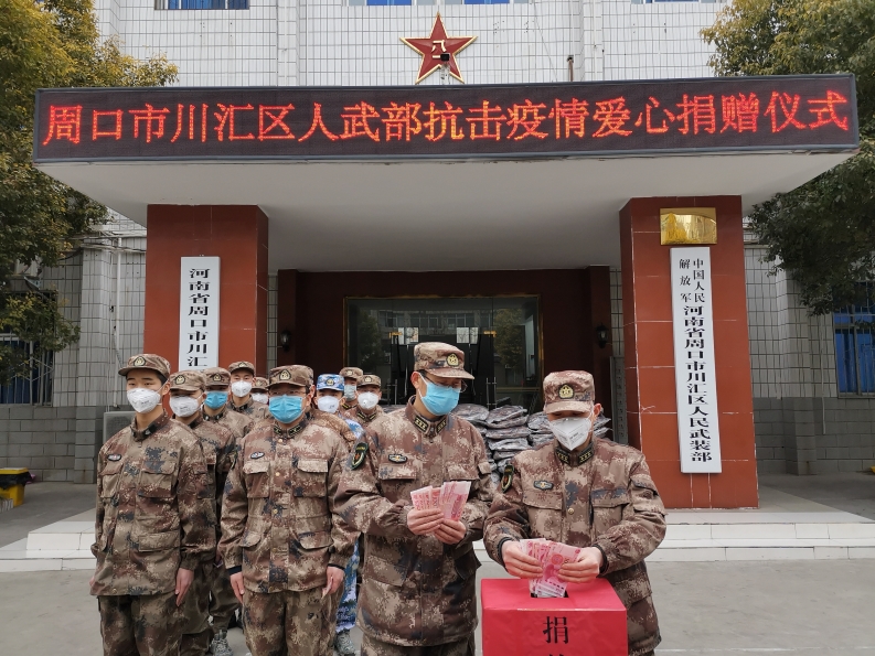“疫情就是命令,防控就是責任。我和政委各捐1000元,大家根據個人情況為防控疫情工作出一份力吧?!碑斎障挛纾▍R區(qū)人武部院內,部長陳繼芳、政委高新傳帶頭捐款,大家積極響應紛紛捐款,沒有趕到單位的干部職工也通過微信轉賬捐獻善款,此次共收到4135元愛心款??紤]到近日氣溫下降,人武部還購買了141件07式荒漠軍用迷彩大衣。為了讓一線執(zhí)勤人員早點穿在身上,人武部兩位主官立即出發(fā),先后趕到川匯區(qū)衛(wèi)生局、城北辦事處、華耀城辦事處、小橋辦事處等防疫執(zhí)勤點,親手把軍用大衣送到他們手中,囑咐大家一定要安全謹慎、注意保暖。