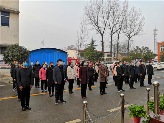 按照疫情防控復(fù)產(chǎn)復(fù)工工作安排,2月24日為恢復(fù)上班的第一天。8時(shí)許,西華縣聶堆鎮(zhèn)政府全體干部衣冠莊重、佩戴口罩、按照間隔1.5米的距離整齊地站在國(guó)旗臺(tái)前共同舉行隆重的升國(guó)旗儀式,以一種不一樣的方式打開新的工作局面。