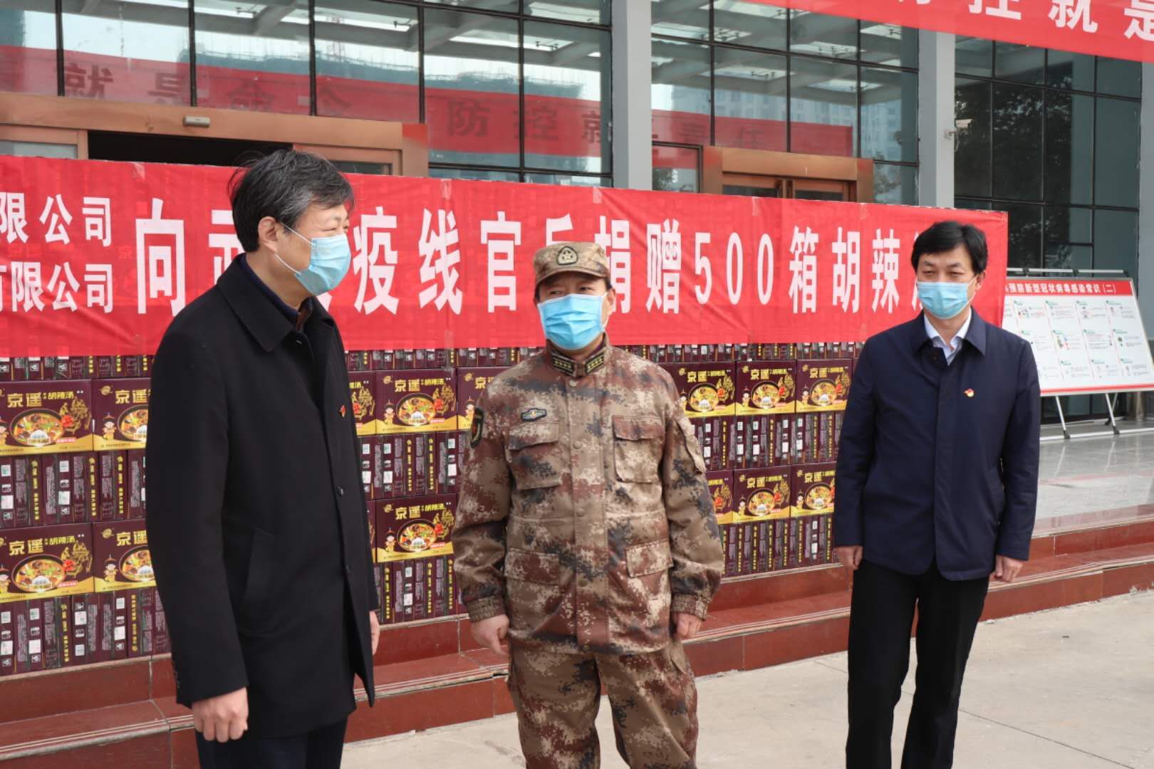 為助力解放軍官兵抗“疫”工作,2月24日上午,東方時(shí)尚(西華)機(jī)場(chǎng)有限公司,向武漢抗(疫)前線官兵捐贈(zèng)價(jià)值一萬余元的胡辣湯料。周口軍分區(qū)司令員王善沖,西華縣委書記林鴻嘉,常務(wù)副縣長(zhǎng)王獻(xiàn)超,西華縣人武部部長(zhǎng)錢瑞、政委涂友佳,親臨捐贈(zèng)現(xiàn)場(chǎng)。