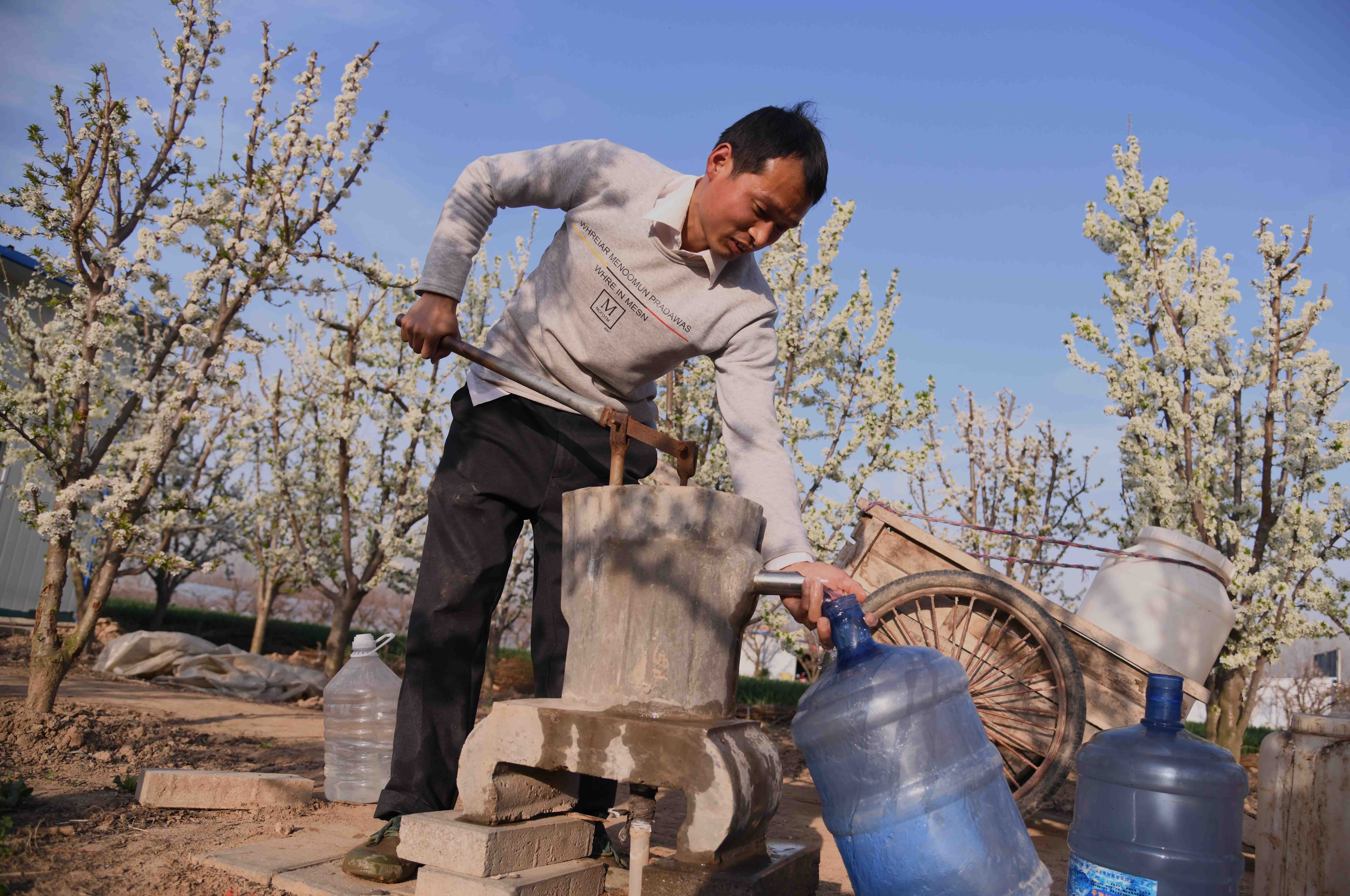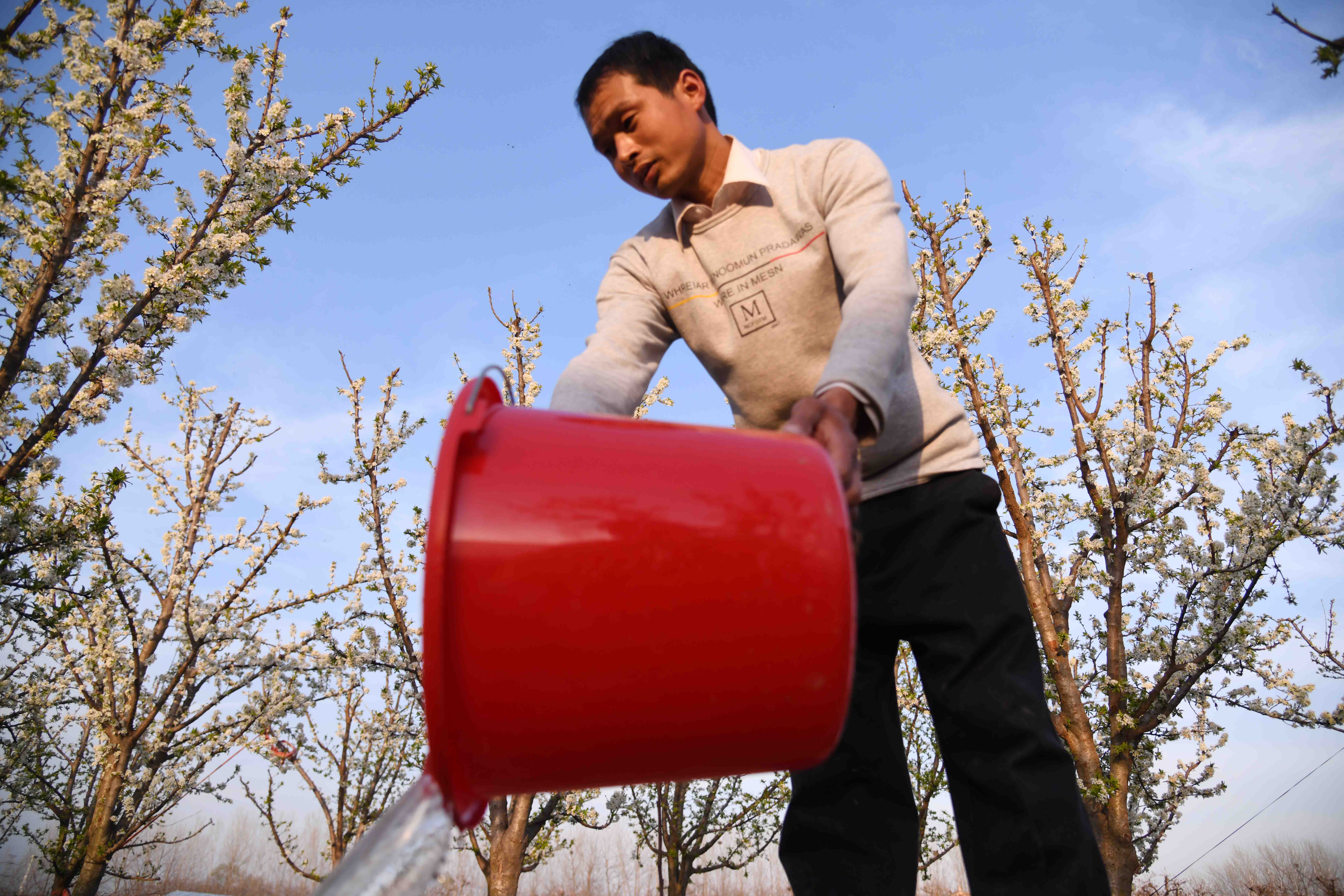 記者在一家果農(nóng)的果園里看到,果園在春陽(yáng)下,李子花滿園濃放,滿樹花朵潔白如玉,芳香四溢,宛如置身人間仙境。果農(nóng)正忙著為果樹澆水,侍弄新栽的果苗。何莊村果園有三四百畝,種植有桃樹、蘋果樹、梨樹、李子樹、柿樹等,是附近有名的果樹種植村,成為村里的重要副業(yè),每年夏秋季節(jié),這里瓜果飄香,吸引很多城里人和附近村民前來(lái)購(gòu)買。