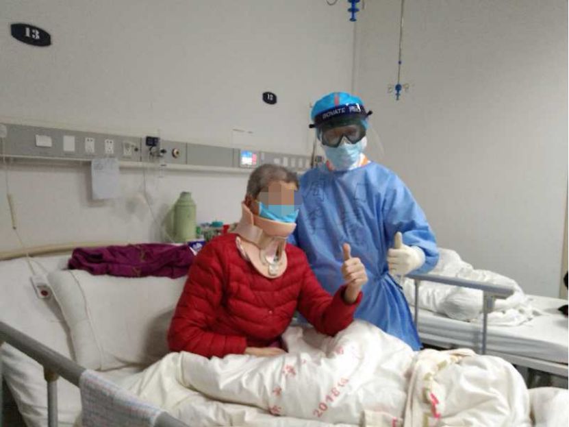 進入醫(yī)院之后,發(fā)現(xiàn)病患并沒有想象的那么可怕,而且很熱情,尤其在一系列的護理操作及心情疏導(dǎo)之后,很多病患為周口赴鄂醫(yī)療隊豎起了大拇指,說河南人真棒,這個時刻就是對孫慧慧最大的鼓勵。